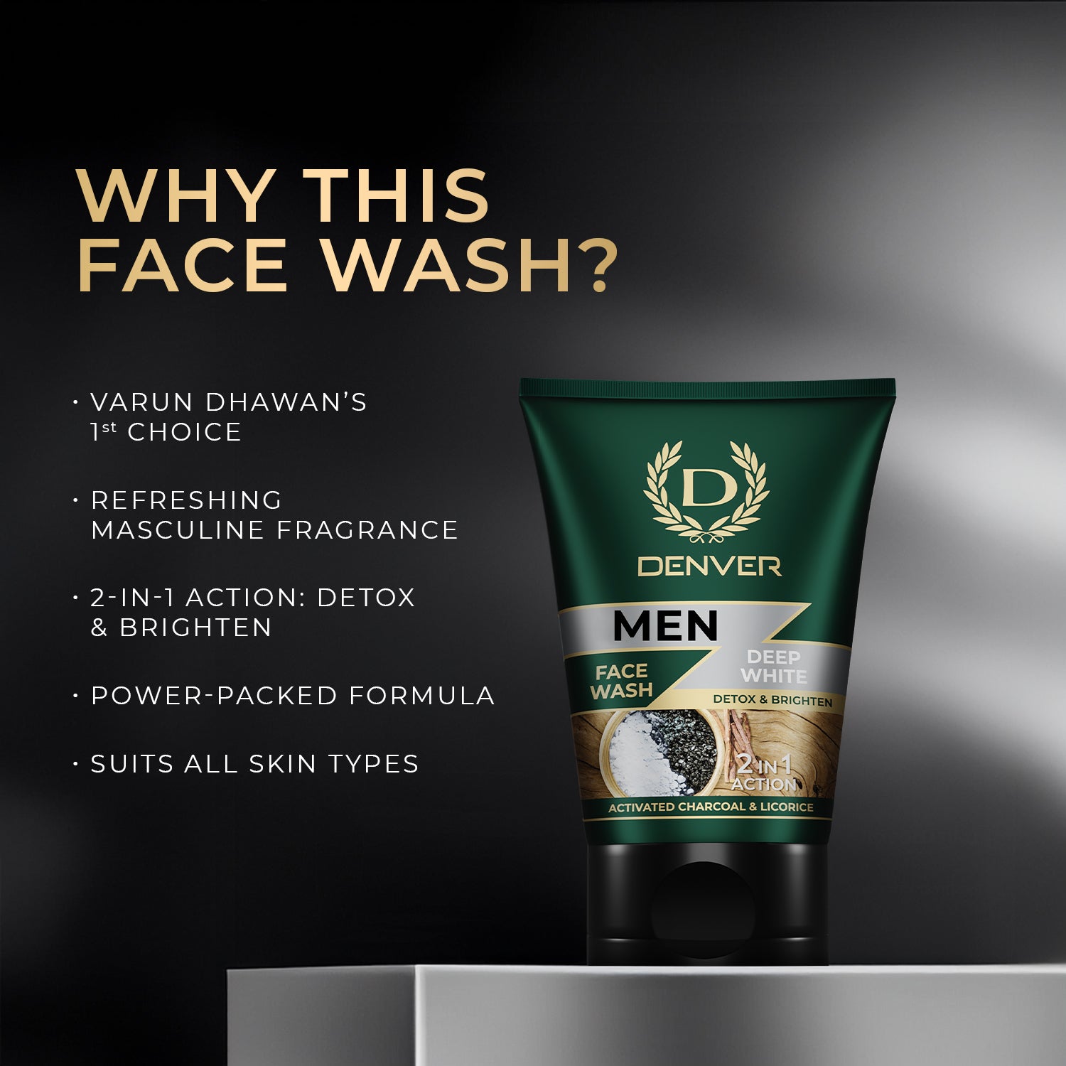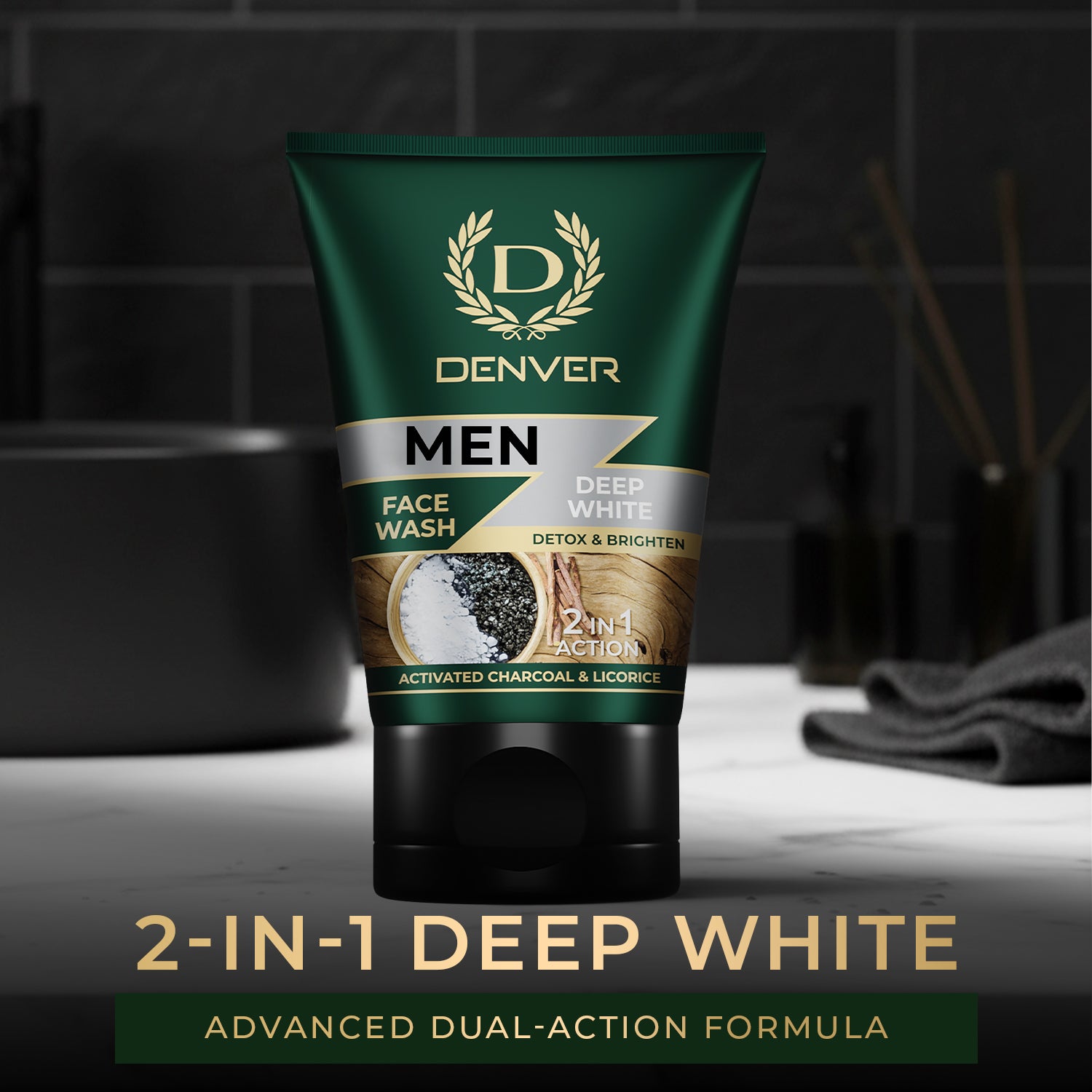 Power up your skin with Denver’s 2-in-1 Deep White Facewash. A high-performance formula crafted for men who expect more from their grooming. Developed at Denver Labs, it combines Activated Charcoal to detoxify deep within the pores with Niacinamide and Licorice Extract to brighten, even out skin tone, and fade dark spots. The result? Instantly fresher, clearer skin that looks as sharp as you feel.