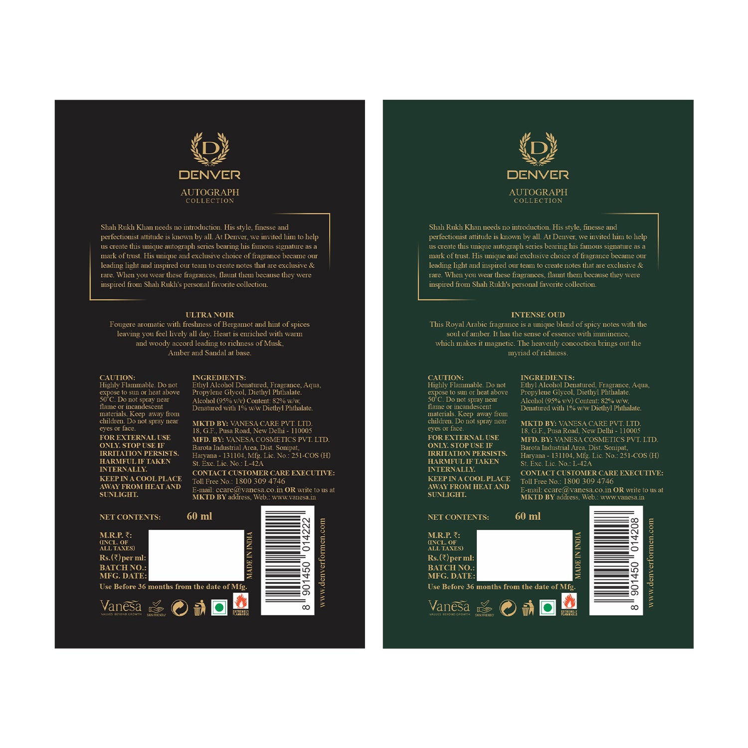 Pack of 2 SRK Autograph Perfumes (Intense Oud + Ultra Noir) - 60ml Each