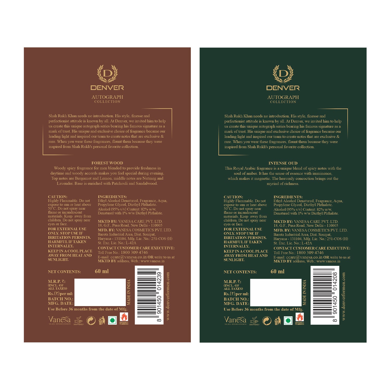 DENVER Pack of 2 SRK Autograph Perfume (Intense Oud + Forest Wood) - 60ml Each
